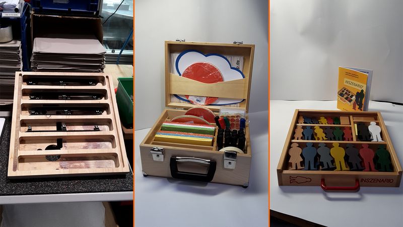 Сотрудники мастерской OWB в основном изготавливают продукцию для проведения разного рода мероприятий и презентаций. Уже несколько лет весь ассортимент продается через интернет-магазин OWB. Здесь выпускаются, в частности, модульные чемоданы для психологов, содержащий так называемый набор Inszenario®. В данном случае речь идет о многократно проверенном высокоэффективном коммуникационном средства для обнаружения и устранения глубоких психологических проблем в межличностной сфере. Также предлагаются кейсы для модераторов, которые изготавливаются из отечественной березовой древесины. Все продукты отличаются первоклассным качеством и пользуются большой популярностью.
